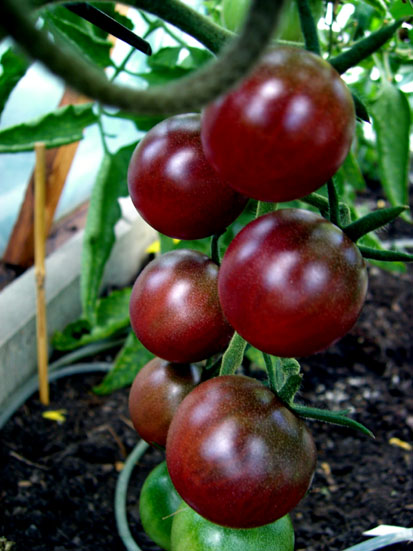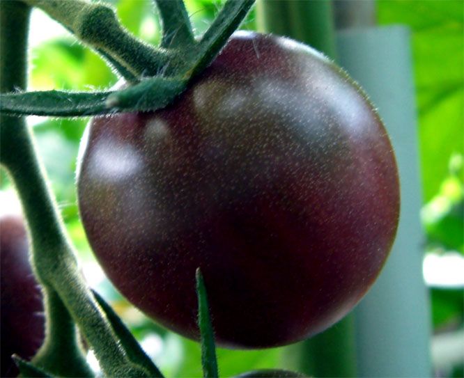 eine dunkelrote bis schwarze - etwa 50 g schwere - leicht süße Sorte