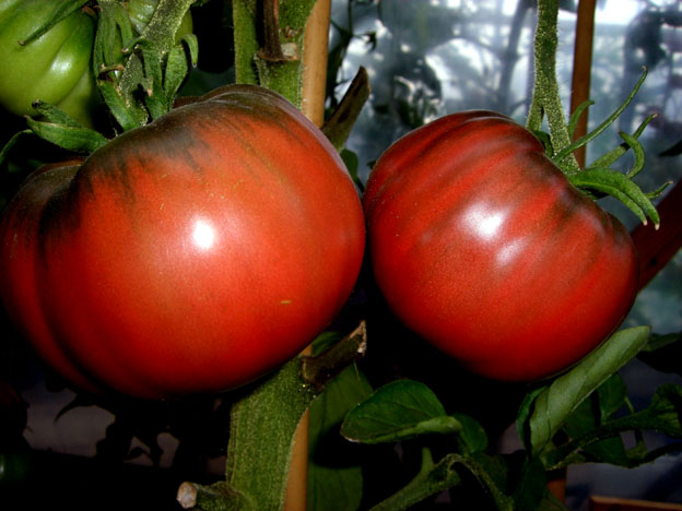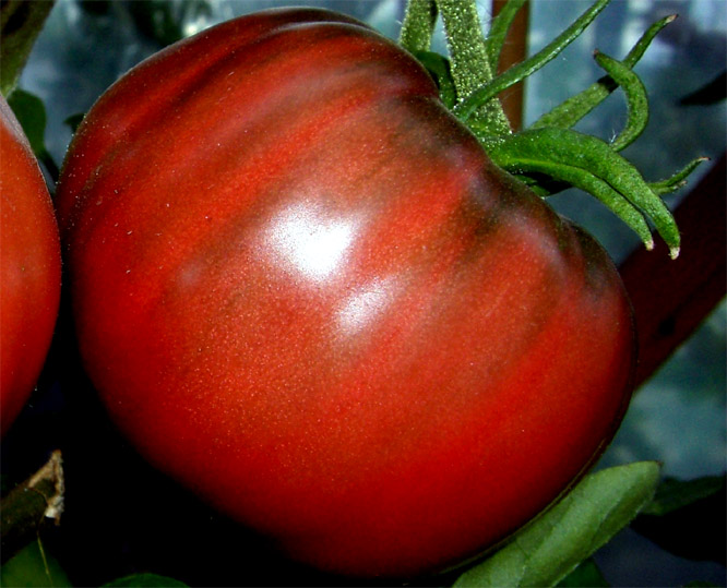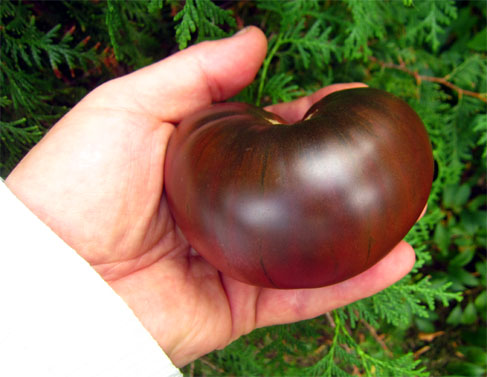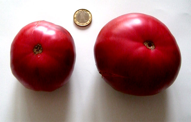 dunkelrote 300 - 350 g schwere und sehr saftige Tomate - gut für Salate geeignet