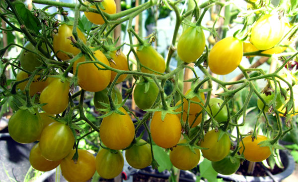 reichhaltig tragende Cocktailtomate an einer Traube kann bis zu 100 Früchte tragen
