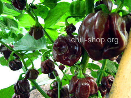Scotch Bonnet Chili mit sehr scharfen schokoladen farbigen Früchten und sehr gutem Aroma