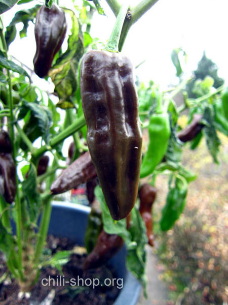 stark wachsende Pflanze mit sehr vielen dunkelbraunen Schoten
