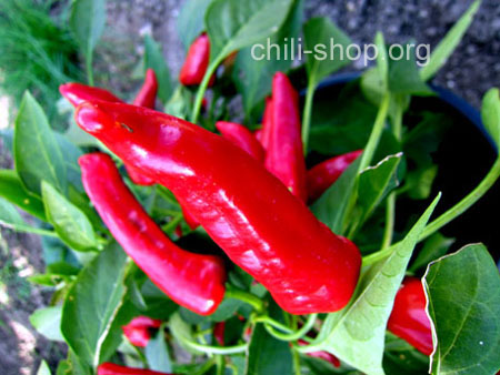 rote aufrecht wachsende Früchte mit erträglicher Schärfe, zum füllen gut geeignet