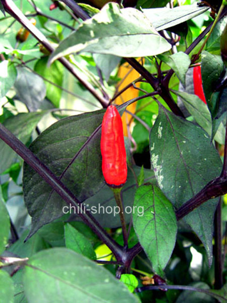 sehr ertragreicher chili, Schoten abreifend von schwarz nach rot