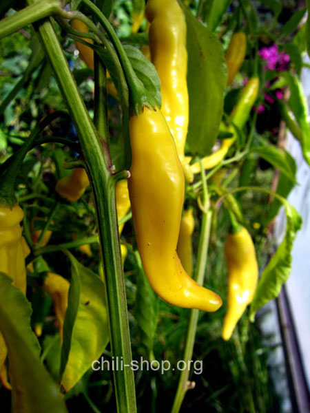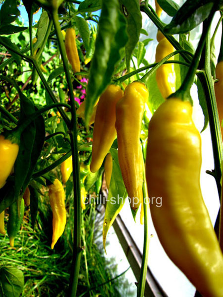 sehr scharfe zitronengelbe Schoten, buschiger Wuchs