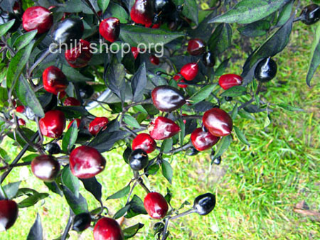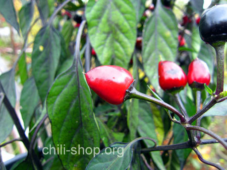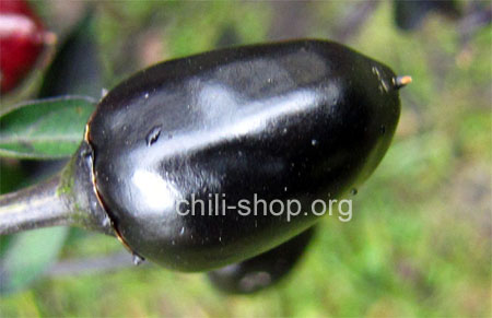 sehr schöne, kompakt buschige Pflanze die Schoten reifen von tief schwarz nach dunkelrot ab