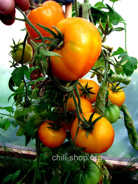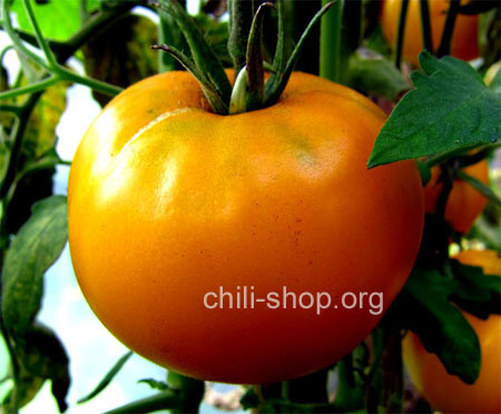 gelbeorange flachrunde fleischige Tomate Früchte bis 250 g - hoher Ertrag