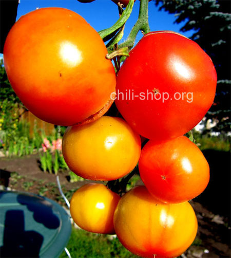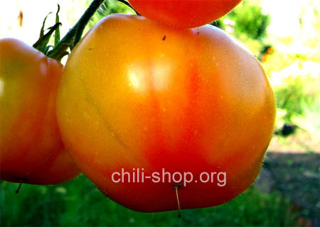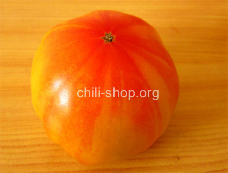 orange flachrunde bis 200 g schwere etwas süßliche Tomate - Fruchtreife mittel