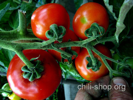 dunkelrote milde bis 200 g schwere Tomate - sehr wuchsfreudige Sorte mit sehr hohen Ertrag