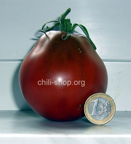 dunkelrote bis schwarze birnenförmige sehr saftige Tomate - Fruchtreife spät